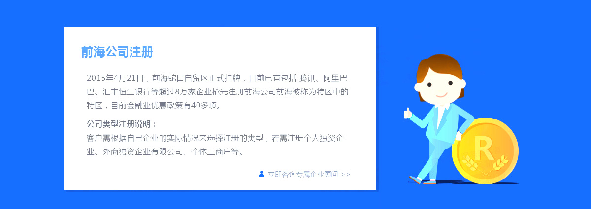 享前海優(yōu)惠政策,可提供紅本地址掛靠,3天辦完,可預(yù)約開戶!開心投資11年工商注冊經(jīng)驗,500多人團隊!