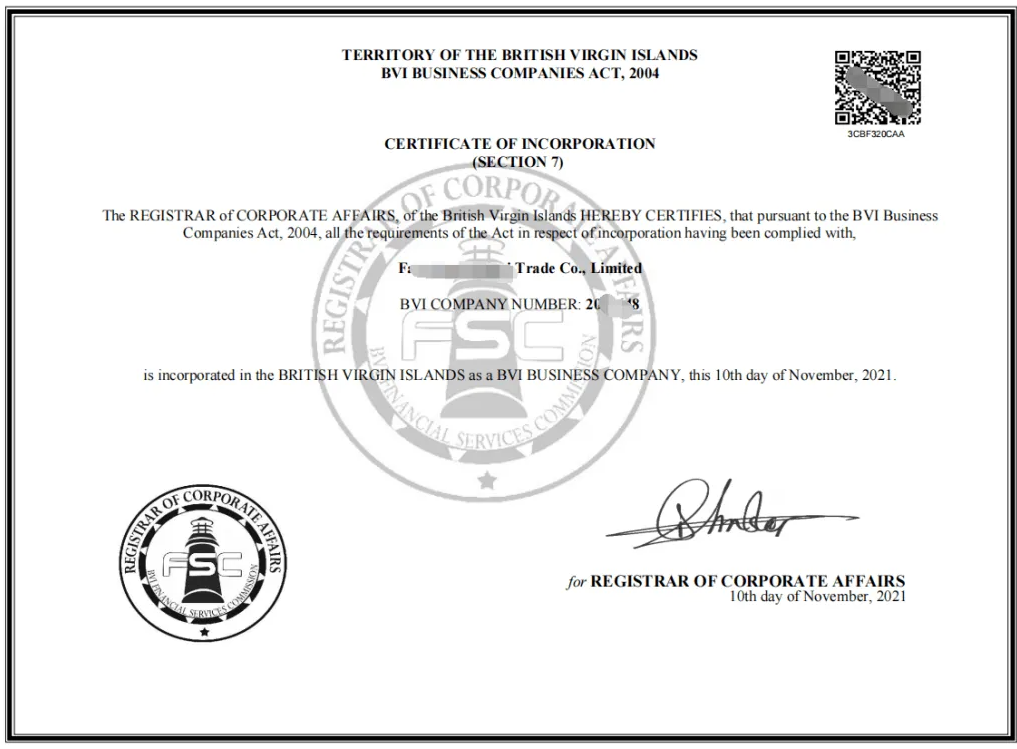 注冊(cè)BVI公司后所拿到的文件包含: