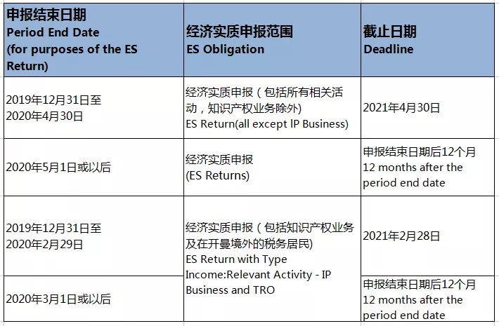 關(guān)于提交經(jīng)濟(jì)實質(zhì)申報表(ES Return)的截止日期總結(jié)如下: