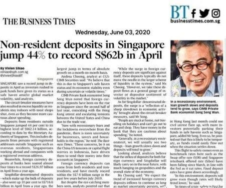-根據(jù)新加坡金融管理局的數(shù)據(jù),今年4月新加坡本地銀行的外幣存款比去年同期增長(zhǎng)近兩倍,達(dá)到創(chuàng)紀(jì)錄的270億新元,而非居民存款飆升44%,達(dá)到620億新元,達(dá)到1991年有記錄以來(lái)的最高水平。